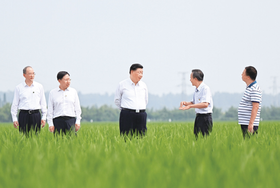 2022年6月8日,中共中央总书记、国家主席、中央军委主席习近平在四川考察。这是8日上午,习近平在眉山市东坡区太和镇永丰村高标准水稻种植基地考察,了解水稻试验育种和种植推广情况。新华社记者 谢环驰/摄