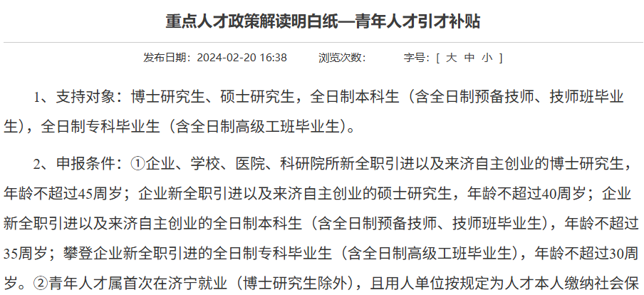 重点人才政策解读明白纸—青年人才引才补贴