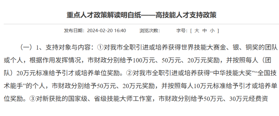 重点人才政策解读明白纸——高技能人才支持政策