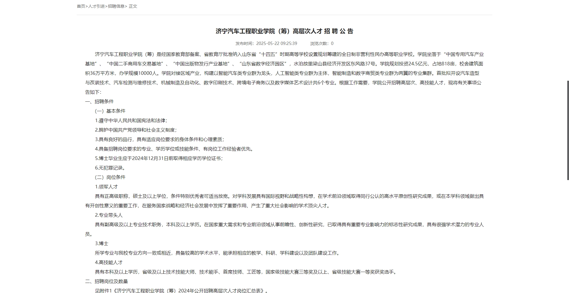 济宁汽车工程职业学院 2025年公开招聘工作人员简章(二)