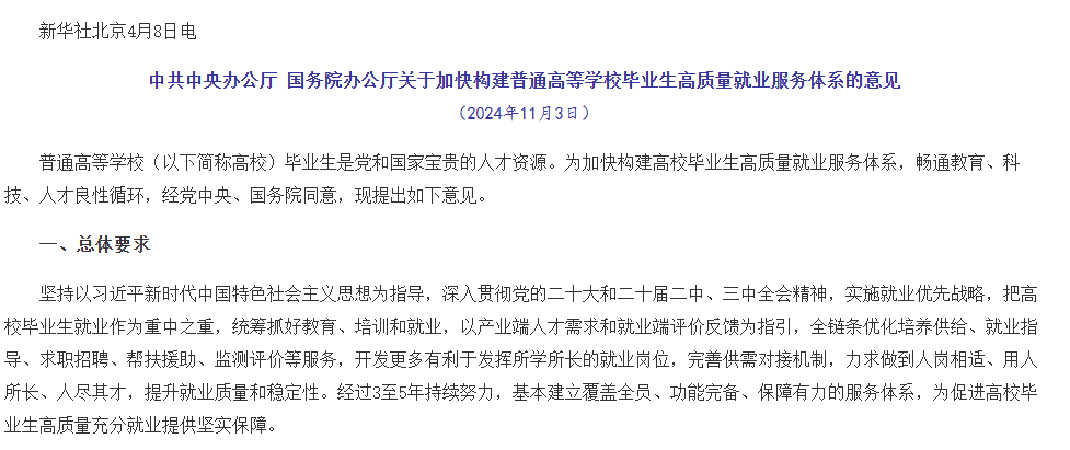 中共中央办公厅 国务院办公厅关于加快构建普通高等学校毕业生高质量就业服务体系的意见